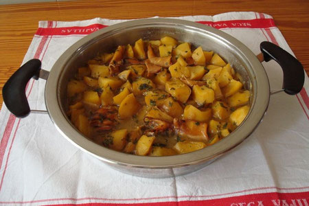Cortar y romper (ver receta marmitako) las patatas en trozos no muy grandes.