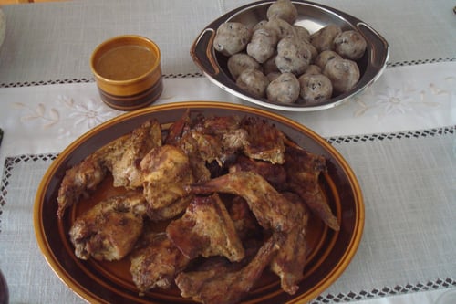 Tiempo, 1 hora para preparar carne y majado, 8 horas mínimo para macerar, hora y media para horneado.