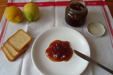 La confección de esta mermelada que no necesita agua para su preparación, no es muy complicada, pero requiere bastante tiempo, unos 30 minutos para corte, 2 horas de reposo, y 1 hora aprox. de cocción.