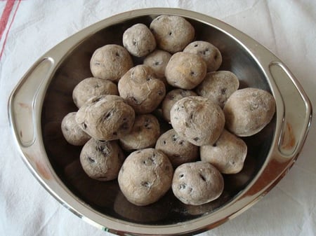 Las papas se cuecen sin pelar, para ello lavarlas bien.
