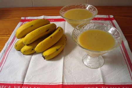 Postre frío, muy fácil de hacer (unos 20 minutos), ideal para aprovechar aquellos plátanos que están demasiado maduros.